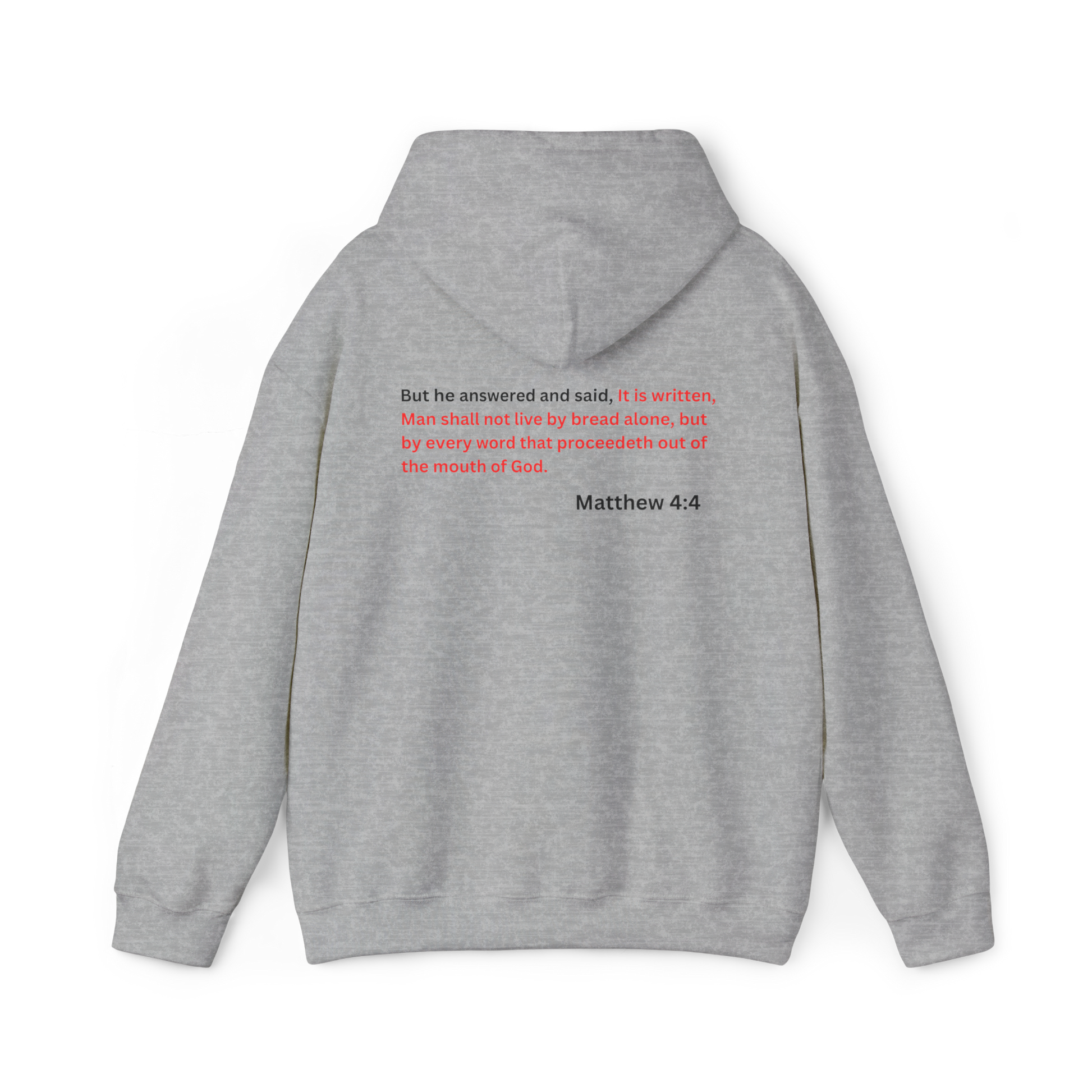 Feed your soul and wear your faith with the Classic Eat the Word Hoodie. Inspired by Matthew 4:4 — "Man shall not live by bread alone, but by every word that proceeds from the mouth of God" — this hoodie is a bold reminder that true life is found in God's Word.